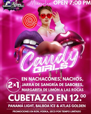🍭🎤 ¡Miércoles de Candy Girls en el karaoke! Ven con tus amigas, disfruta de promos especiales y sé la estrella de la noche. #KaraokePanama #CandyGirls #NocheDeAmigas