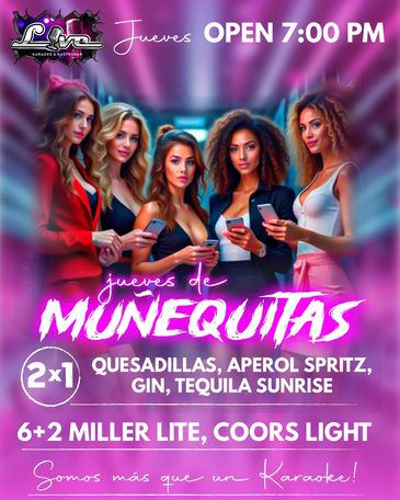 ✨👯♀️ ¡Jueves de Muñequitas! Ven con tus amigas a disfrutar promociones en tragos seleccionados, quesadillas, gin y tequila. ¡La noche es nuestra! #JuevesDeAmigas #KaraokePanama